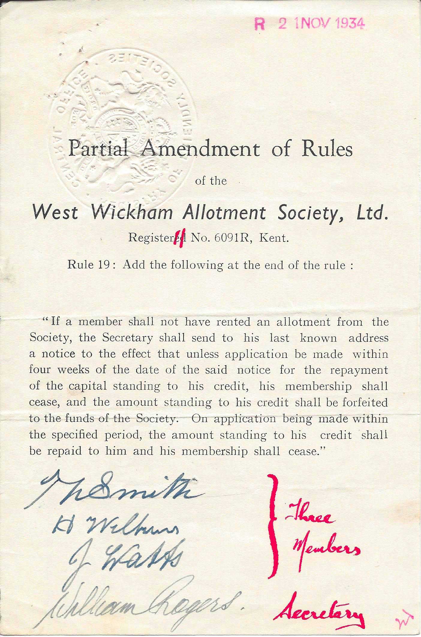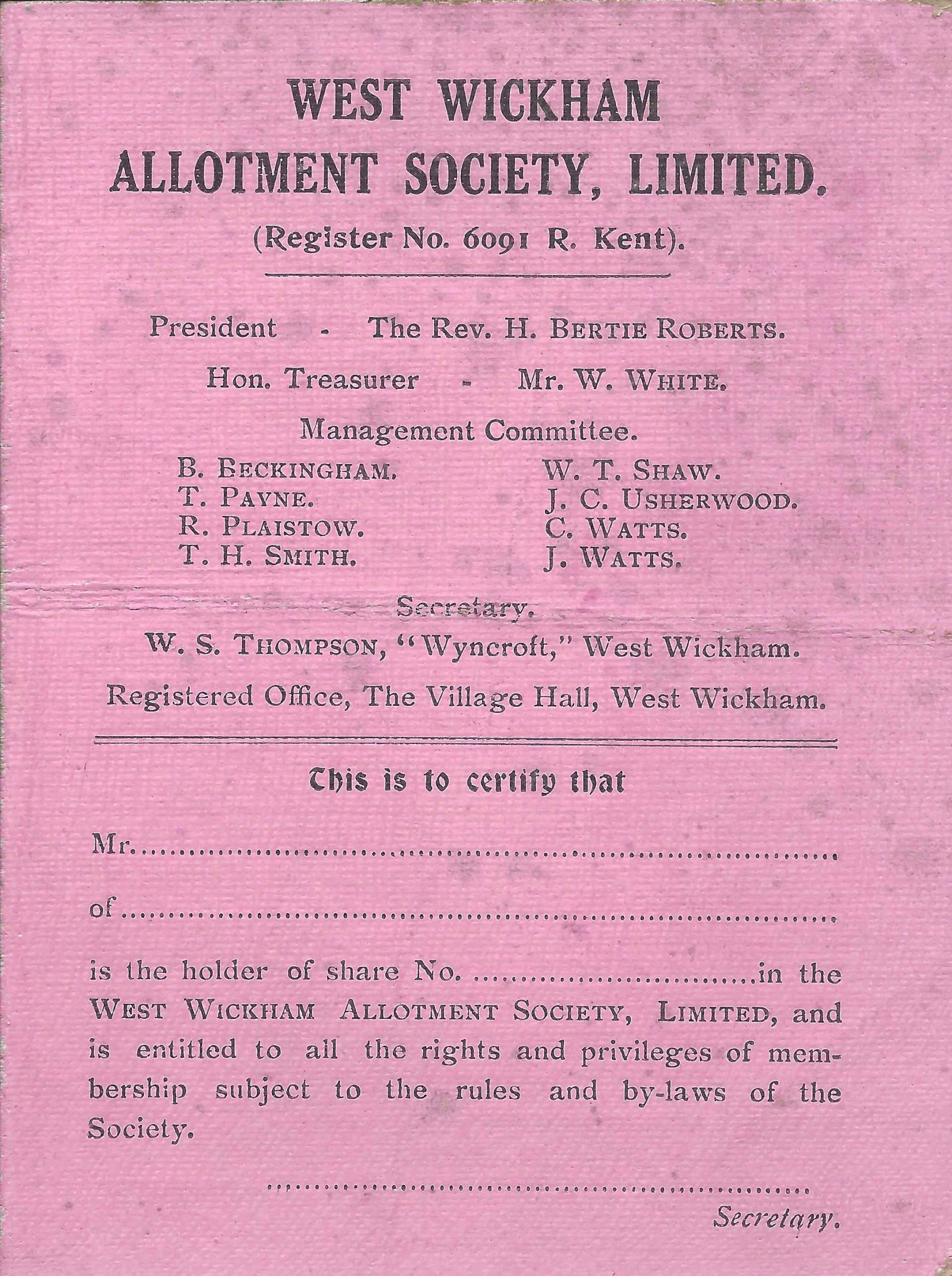 West Wickham Allotments Association became fully self-managed in 1970 and in 2019 it was incorporated as a Limited company, as required by Bromley Council. This resulted in the lease being renewed for a further 20 years.