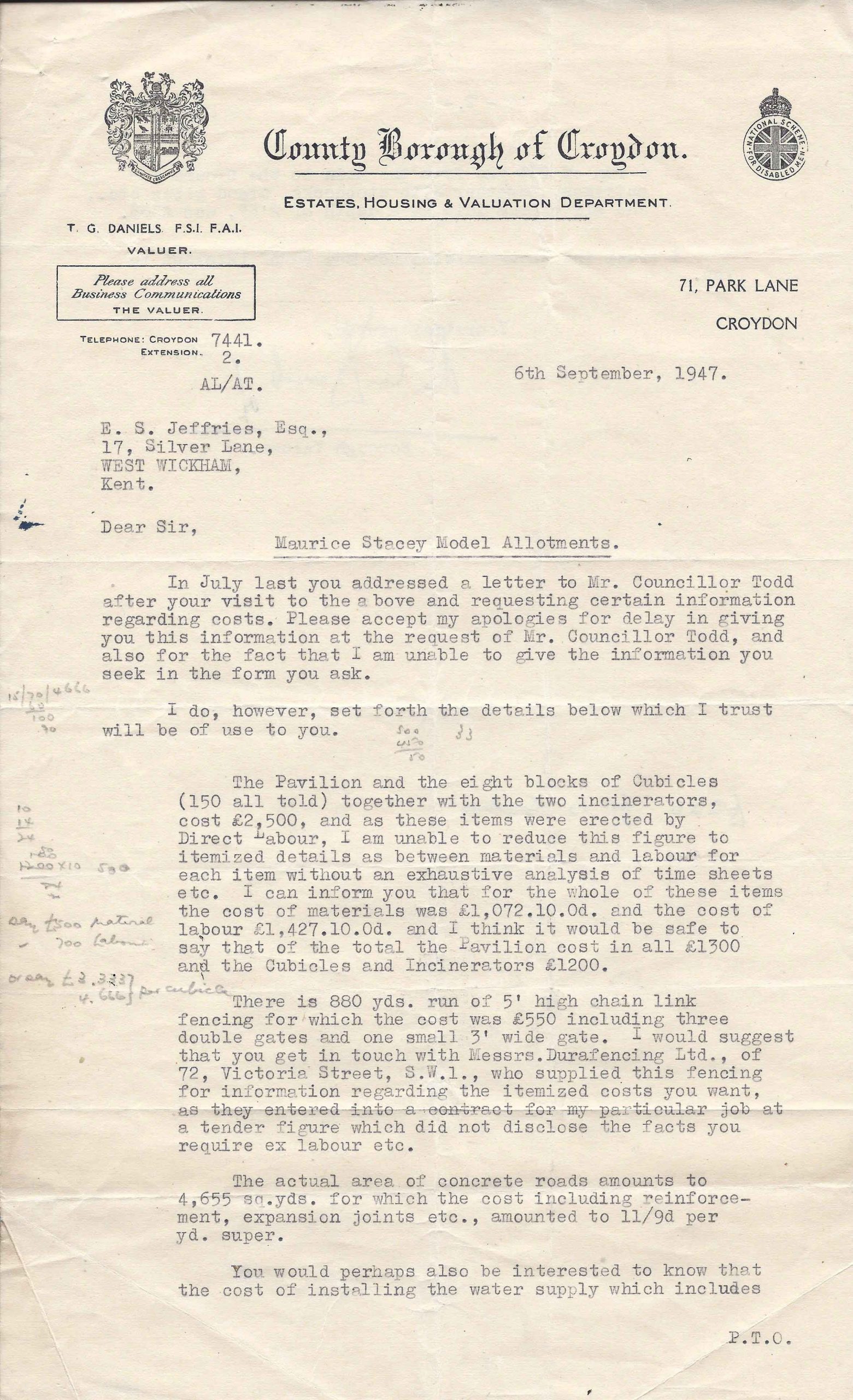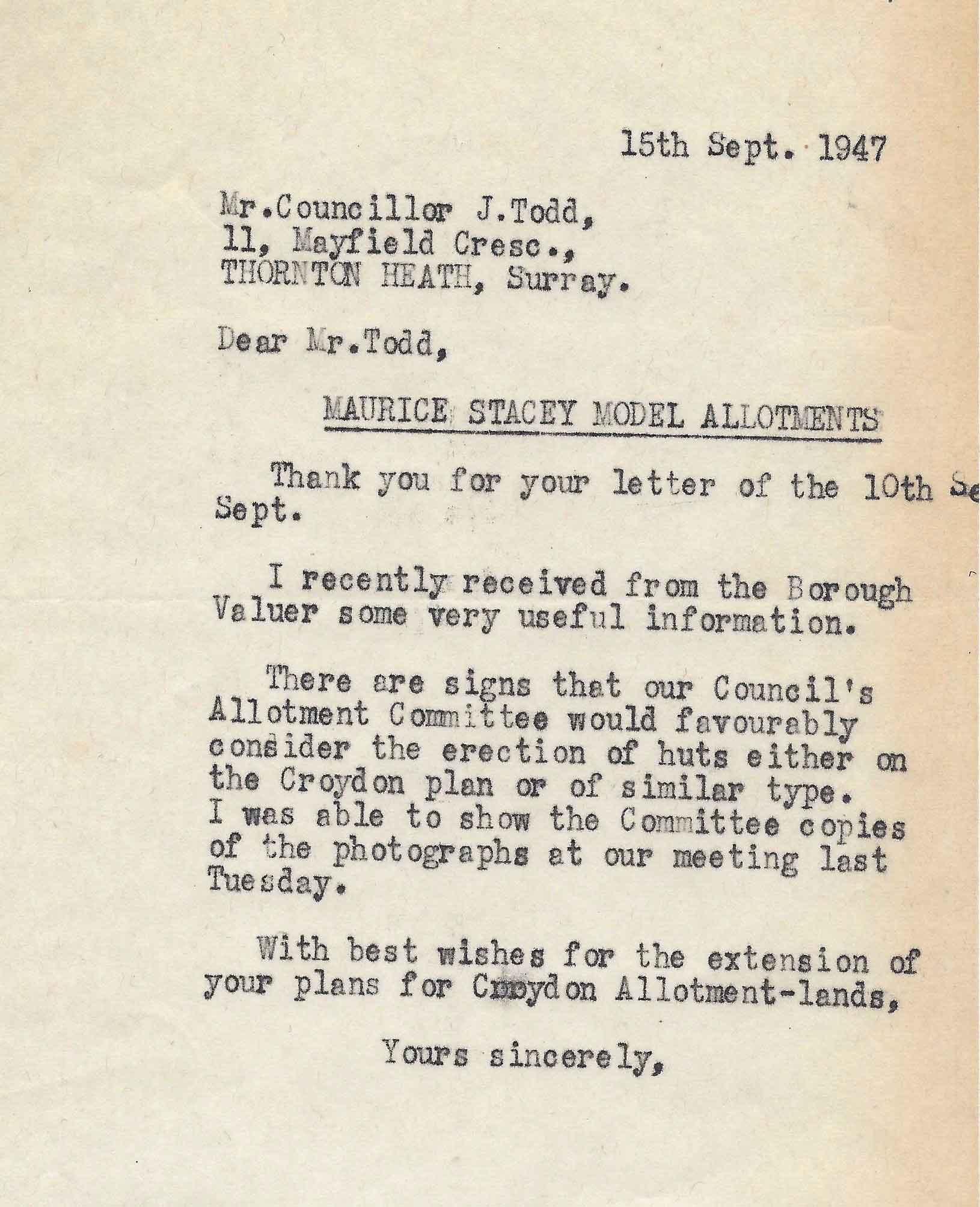 The original water supply on the site was in ½” galvanised pipe from a meter in Hawes Lane to just four plots. The inevitable problem was that when the first tap was turned on, no water was available to the others. As a result, water was rationed, with Ernest Jeffries standing by the taps each evening for 20 minutes at a time. In January 1939, the Council came up with the ‘generous’ idea of supplying materials for a better supply, whereby the plotholders would dig the trenches and refill them so the council workers could lay the pipes.